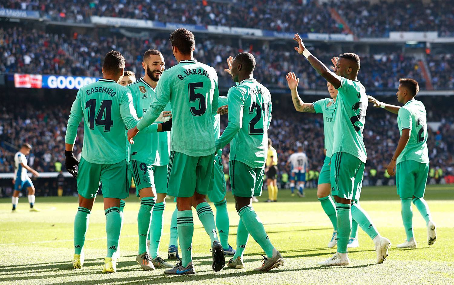 瓦拉内本泽马破门,皇马2-1西班牙人